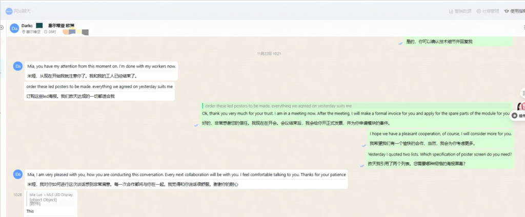 Confiança é o chave para a primeira cooperação transfronteiriça. Depois Sr.. Darko consulta de, MIA respondeu ao mensagem in segundos, detalhando PRODUTOS qu questões, corporativas força, e transfronteiriça processos de cooperação e estabelecendo um inicial f impressão agradável através de eficiente serviço . Considerando sua cauteloso positiva para ” primeiro – tempo aquisição “, MIA não recomendar alto preço . Em vez disso, baseado on sua sala de exposição exibição Cria e local final clientes ‘ requisitos, ela comparado a nd analisado e Recomenda da P 2.9 aluguel tela , qual is da a maioria geralmente usava in da no exterior mercado. Comparado com da P2.6 modelo recomendo ded by Outros fornecedores, da P2.9 garante exibição efeito enquanto ter a mais vantajoso preço, ajudando Sr.. Darko salva investimento inicial custos.